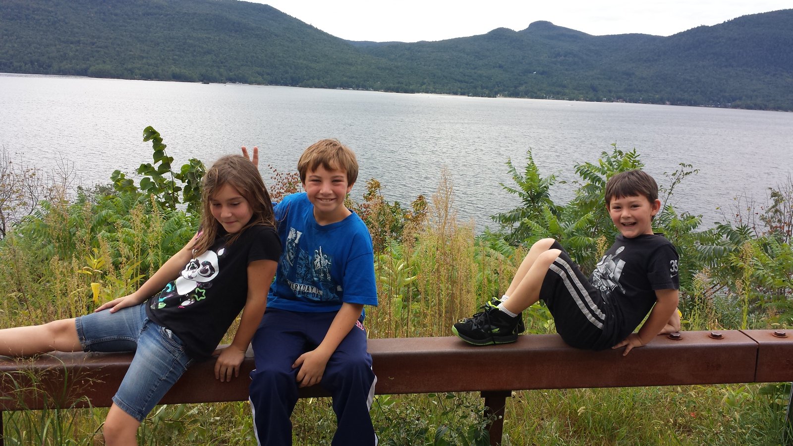 We drove past Roger’s Rock (Where a man set himself against the French and the Indians in the battle for our freedoms.) and down to the Hague. From there I showed them where Tina and I have often stayed at Silver Bay. The last stretch brought us through Bolton Landing and into the village.It was Adirondack Nationals and my grandchildren flipped as we crept slowly through the village because of the thousands of cars. Muscle cars, vintage vehicles and more filled the streets. Turning around five miles south we began the slow journey back in. Heading down to the parking by Million Dollar Beach we were one of the last vehicles allowed entry as they shut the gate.